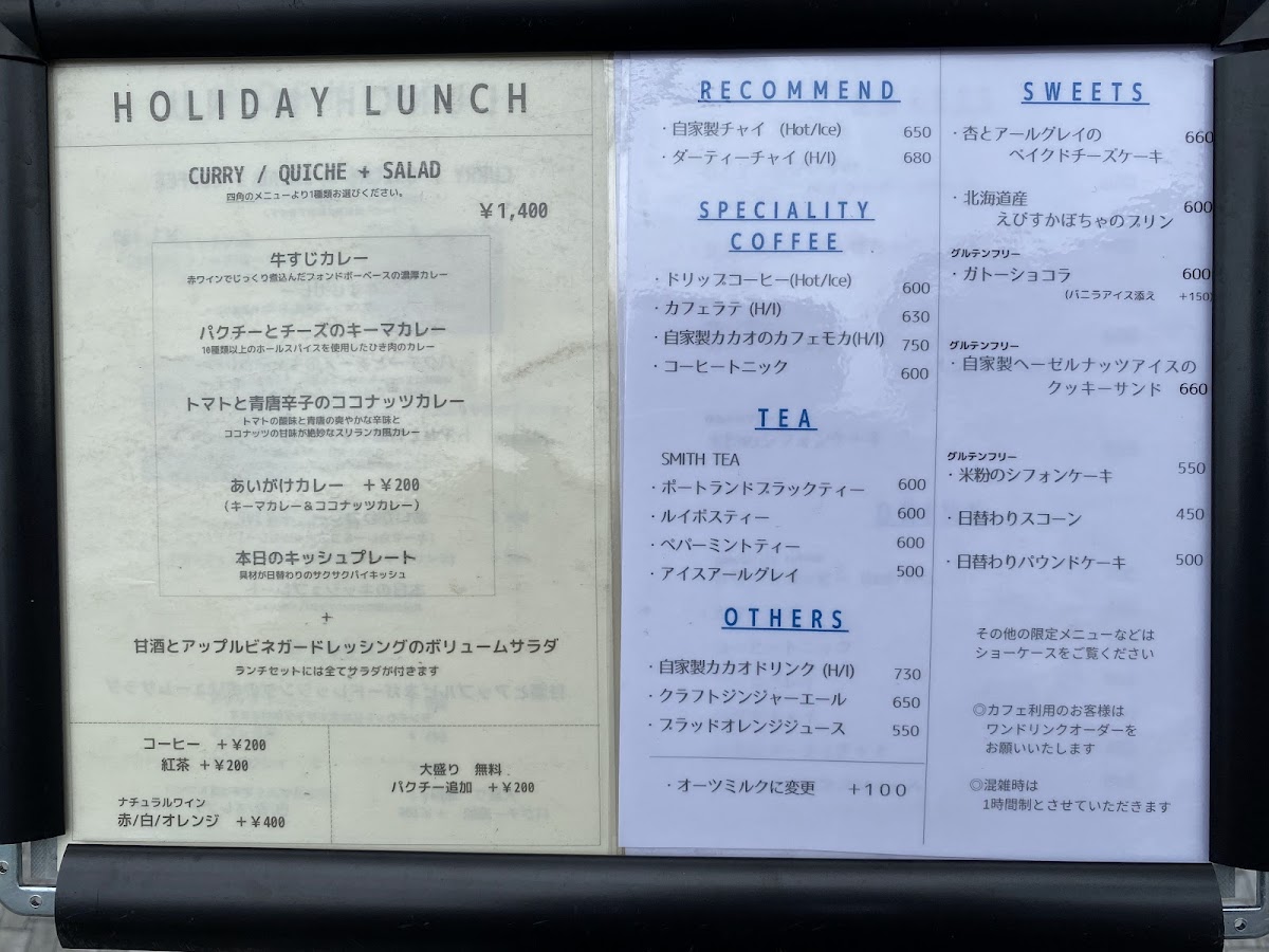 For lunch, complement your meal with a specialty coffee brewed by Jiyugaoka Roastery, available hot or cold at JP¥600. The inviting vibe extends to their desserts, highlighted by a creamy Basque Cheesecake at JP¥800 that patrons rave about for its perfect density and delightful taste.